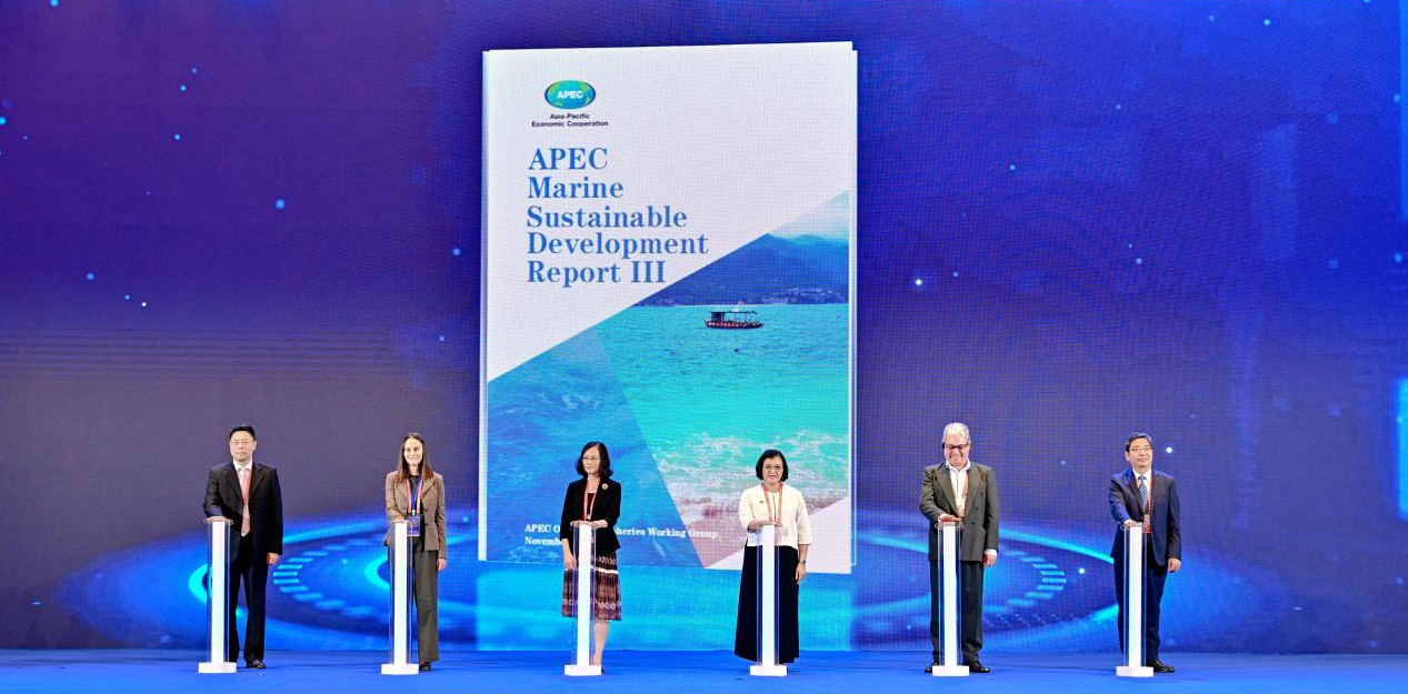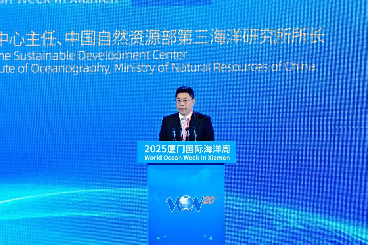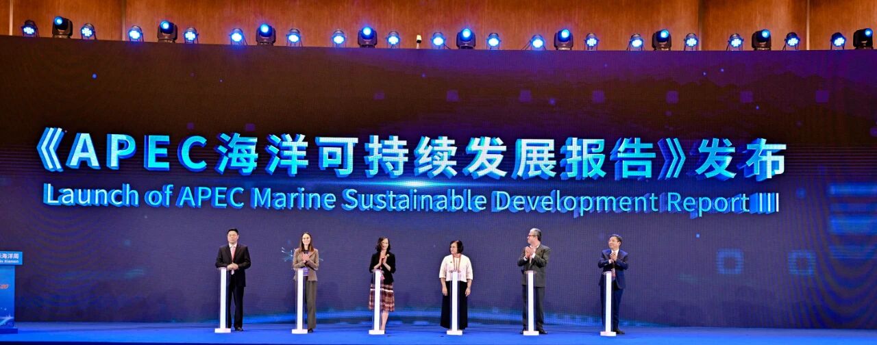 11月6日,《APEC海洋可持续发展报告》(以下简称“《报告》”)发布仪式在2025年厦门国际海洋周开幕式上顺利举行。APEC海洋可持续发展中心主任、自然资源部第三海洋研究所所长蔡锋出席并作专题报告,对《报告》进行全面介绍和深度解读。自然资源部国际合作司司长陈丹红和秘鲁海洋研究所主任Piero VILLEGAS APAZA 、俄罗斯渔业与海洋学研究所高级研究员Aleksandra SUMKINA、泰国海洋与海岸带资源研究院院长Sumana KAJONWATTANAKUL等《报告》共提方代表,以及联合编制单位代表自然资源部海洋发展战略研究所所长吴继陆共同启动《报告》发布仪式。